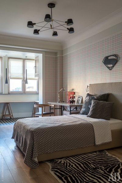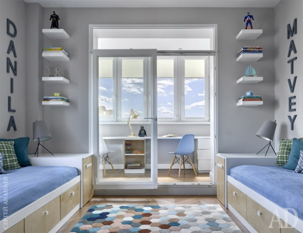 Присоединением балкона решена в этой московской квартире проблема недостатка площади. Дизайнер бюро Lavka-design утеплили это дополнительное пространство и устроили там полноценную учебную комнату для детей. От комнаты балкон отделен раздвижной дверью Veka.