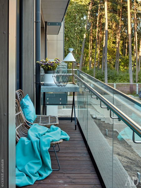 Эта квартира в Юрмале — место временного отдыха семьи, поэтому застеклять балкон смысла нет. Но на открытых балконах необходимо использовать уличную мебель (здесь стоит от House Doctor), а также износостойкие отделочные материалы. На пол хорошо будет положить либо плитку, либо выборочные породы дерева (самым долговечным считается тик).