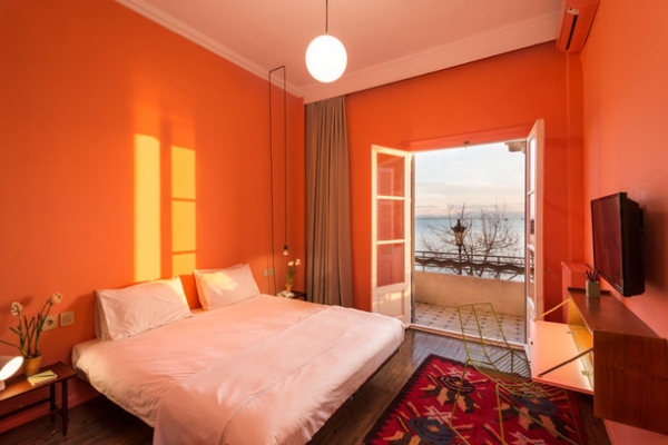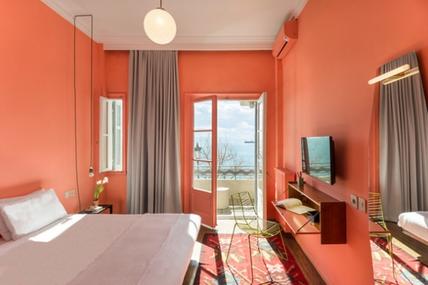 "Мы решили использовать смелый цвет в интерьере апартаментов Waterfront Nikis для того, чтобы дополнить морской вид и акцентировать на нем внимание, а не подавлять его", — рассказывает дизайнер.