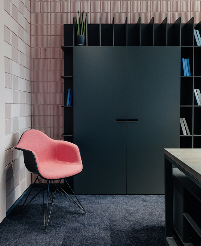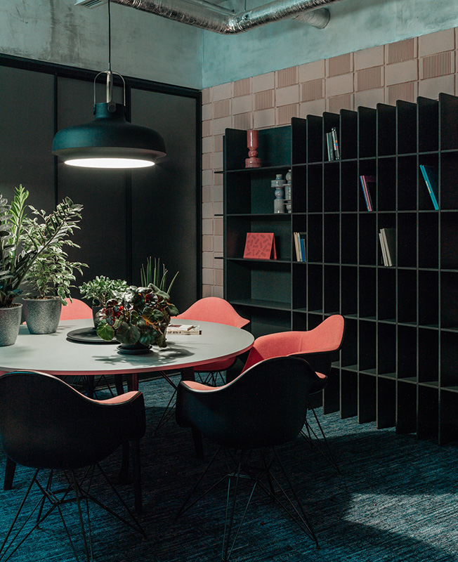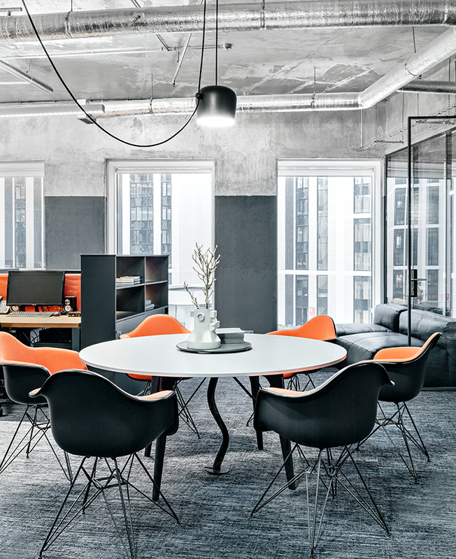 Хотелось найти такой образ, который был бы органичен компании, с которой я хорошо познакомилась в процессе работы и очень впечатлилась их внутренней собранностью, отлаженностью всех процессов. Что-то в них есть от старой артели, какая-то удивительная совместность, такое редко встретишь в российских организациях. Хотелось показать силу этой неформальной «командности» — выбором материалов, цвета, деталями.