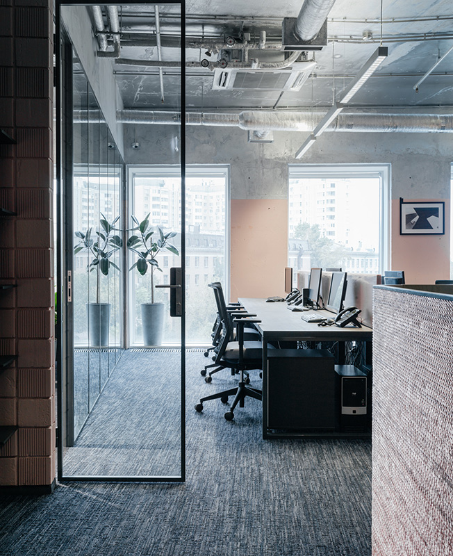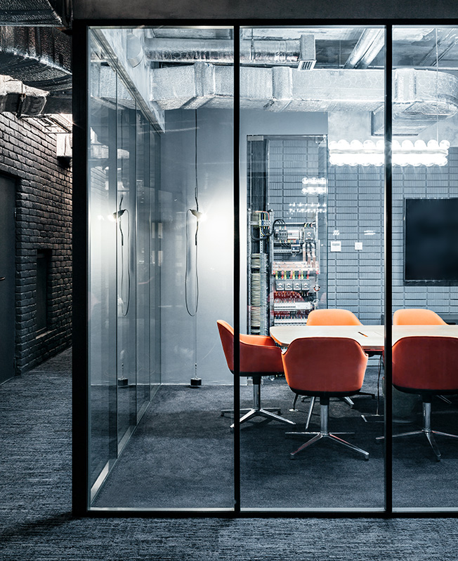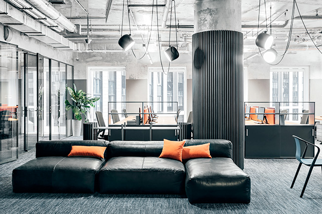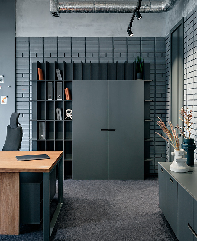 Заказчикам нравился стиль лофт. В компании работают в основном мужчины, поэтому мы изначально двигались в сторону грубых текстур, простоты и брутальности. Мне хотелось обойтись без использования клише «стиля лофт». Он, на мой взгляд, сейчас стал новым «провансом» и превратился в набор штампов, которые применяют по поводу и без.