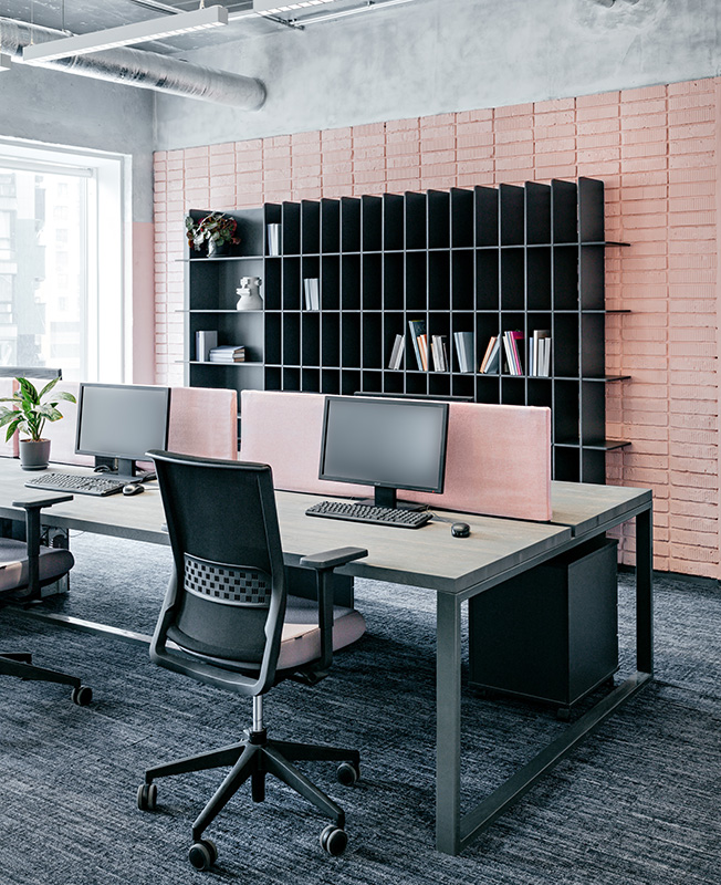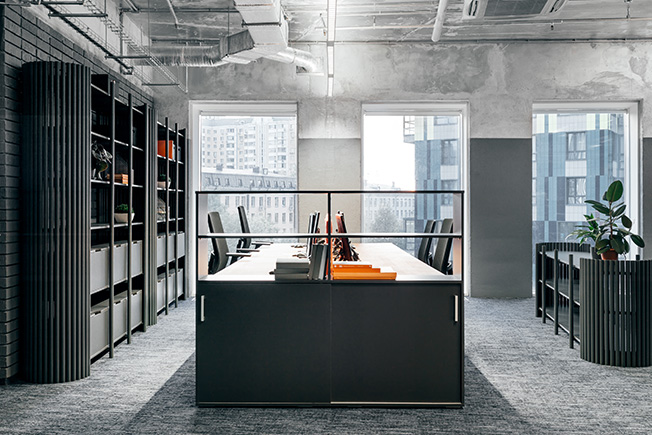 Вообще, сейчас много интересных новинок в материалах для офисной и торговой мебели, например пластик Fenix, из которого у нас сделана кухня — он абсолютно матовый, при этом почти не пачкается и очень прочный. Очень удачным оказался ковролин Desso из коллекции Jeans Twill — в массе на полу он смотрится фантастически, там такая играющая цветом и объемом текстура, очень элегантная.