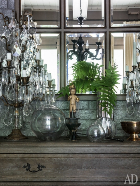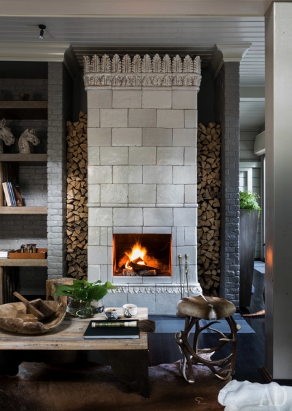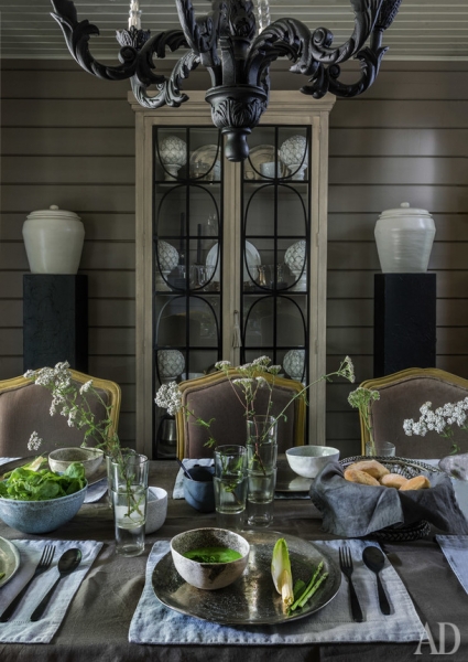 Цветовую гамму интерьера дома тоже диктовала природа: здесь собраны оттенки коры сосен, мха, подлеска, зелени. Все построено на игре фактур — дом делался долго, и здесь нет ни одной лишней детали, а аксессуары сестры собирали во время путешествий по миру.