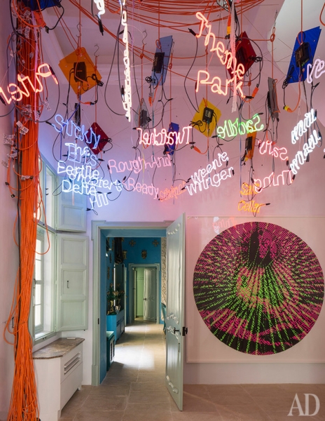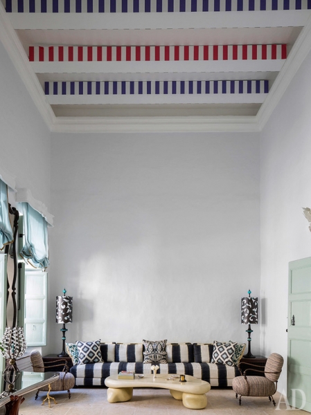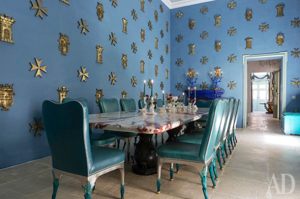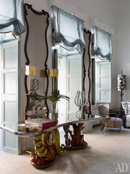 Дворец сохранил множество оригинальных элементов барокко, которые декоратор восстановил с помощью местных ремесленников. Но он также привнес в старинную архитектуру несколько современных вещей, вроде лифта или бассейна в подвале. По его замыслу, они не должны смотреться чуждо, наоборот, этот дизайн должен был создать баланс традиционного и нового.