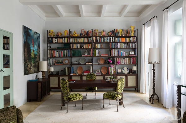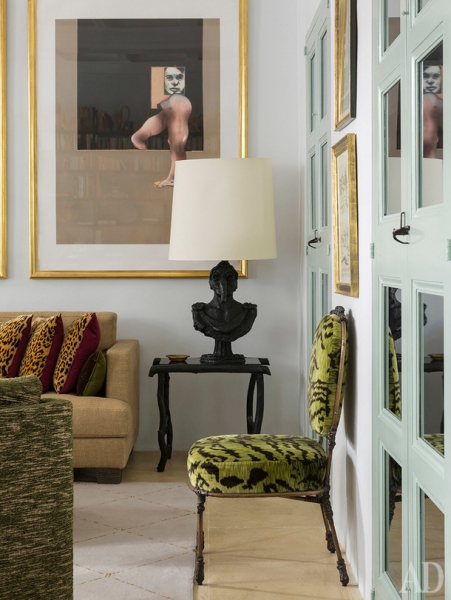 В этом дворце, кстати, была даже особенная комната для наложницы — с секретным доступом в спальню рыцаря и отдельной дверью на улицу. Сейчас в основные комнаты ведет парадная лестница, которую Султана покрыл ковром с тигровым принтом. Поднявшись по ней, можно попасть в библиотеку, которую декоратор часто использует в качестве приемной комнаты.