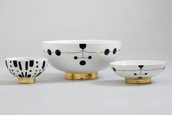 Еще один вариант необычной посуды для вечеринки — набор мисок с геометричным дизайном от Хайме Айона. Строго и с легким оттенком ар-деко.