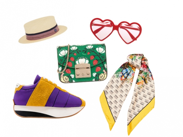Шляпа, Maison Michel; очки и платок, Gucci; кроссовки, Marni; сумка, Furla.