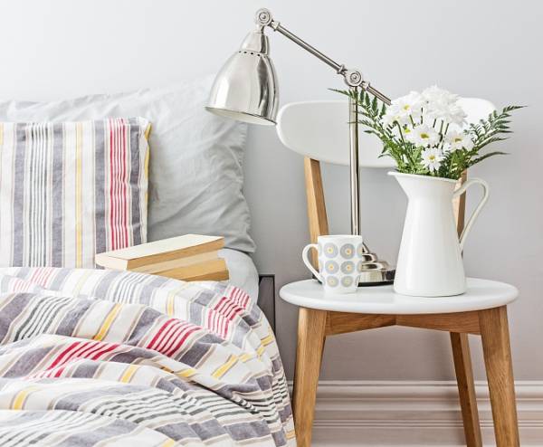 В финском дизайне при оформлении спальни очень важен минимализм, демократизм и практичность. Здесь обычно присутствует кровать, тумбочки и кресло. Окна обрамляются воздушными занавесками, а чтобы солнце не мешало спать, их дополняют римскими шторами. Цветовая же гамма должны быть светлой и спокойной, способствующей релаксации. Впрочем, в отношении цветовых решений ванная комната тоже не является исключением, и основной оттенок здесь — традиционный белый, хотя вполне можно разбавить его яркими (даже пестрыми!) полотенцами и ковриками на полу.