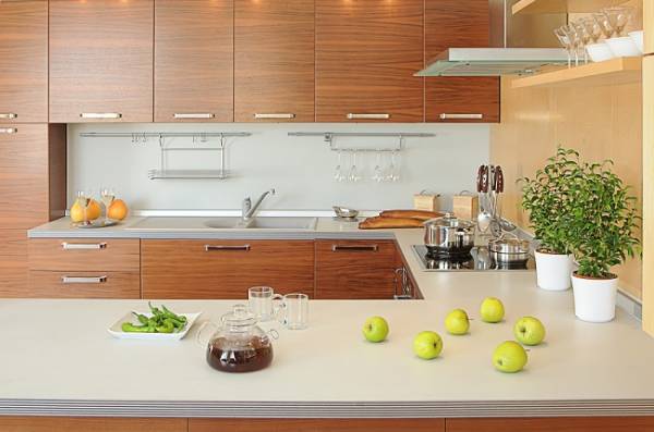 Акрил — относительно новый материал, используемый для изготовления мебели. В качестве основы здесь также используется МДФ. Акриловые фасады выглядят очень модно. К тому же им очень просто придать яркой индивидуальности при помощи фотопечати. Но, как и на любой другой глянцевой поверхности, на акриле сразу же становятся видны все загрязнения, которые необходимо сразу же удалять, чтобы не портить общего впечатления от кухни.