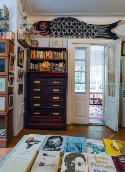 В огромной библиотеке писателя книги с автографами Чехова, Некрасова, Блока, Уолта Уитмена, Ахматовой, Розанова и Твардовского.