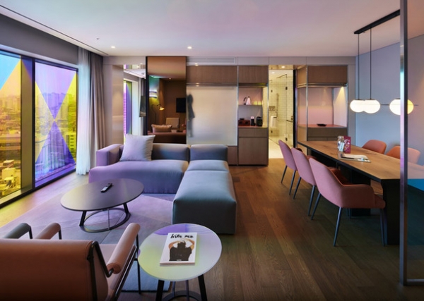 Оформлением нового отеля занималось архитектурное бюро Михаэлиса Бойда вместе с дизайнерами Дэниэлом Сонгом и Кейт Чо из местной студии Integ. "Вдохновением для дизайн-проекта послужила красота корейской природы, а также молодой и творческий характер района Хондэ", — рассказывает Михаэлис.