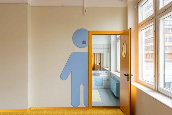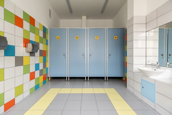Изначально в планах было только переоборудование учебного пространства, но, заглянув в санузлы, Елена и Кирилл поняли, что все обновления бессмысленны, пока эти помещения останутся такими, какие они есть. Они рассуждали следующим образом: "Современные дети посещают торговые центры и знают, что двери могут закрываться. А здесь нет шпингалетов, и в одной кабинке установлено по два унитаза. У школьников сразу возникает масса проблем: одни терпят до последнего, другие ходят в туалет по двое, чтобы было кому подержать дверь".