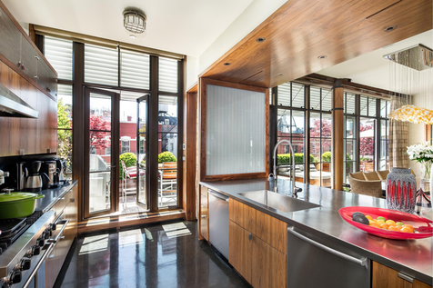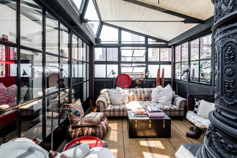 В центре этого легендарного района продают интересный пентхаус, который, несмотря на интерьеры в индустриальном стиле, выглядит романтичным и воздушным. Все дело в большом количестве естественного света, проникающего через окна и стеклянные перегородки. Каждая комната имеет уникальный дизайн, который прорабатывал бывший владелец вместе с архитектором Стивеном Харрисом.