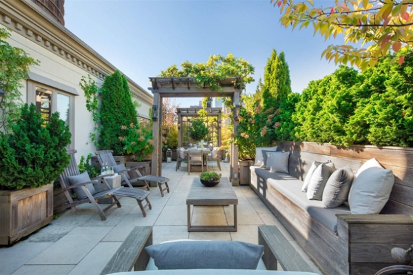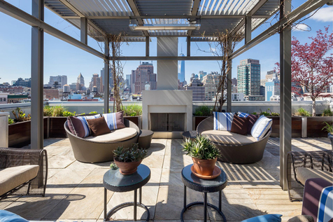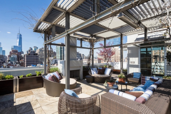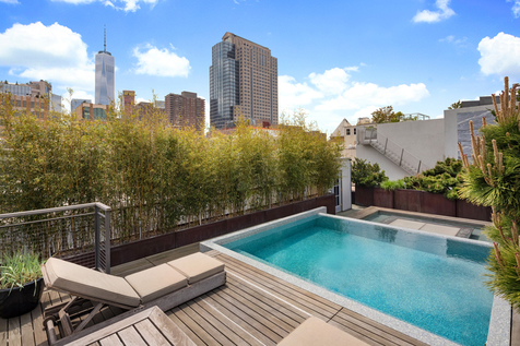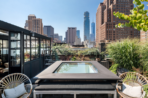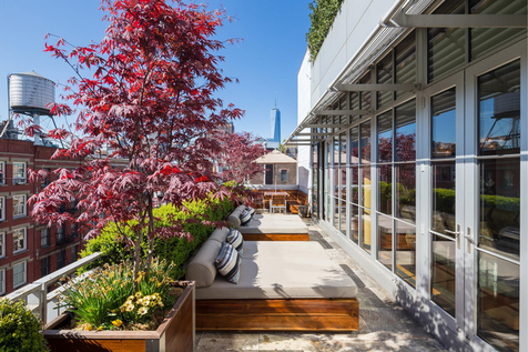 В том же Сохо находится еще один пентхаус с настоящим зеленым оазисом на террасе. В южной ее части расположены открытая кухня и небольшая столовая в саду, а в северной находится уединенная зона с гидромассажной ванной.