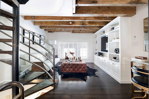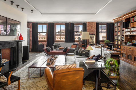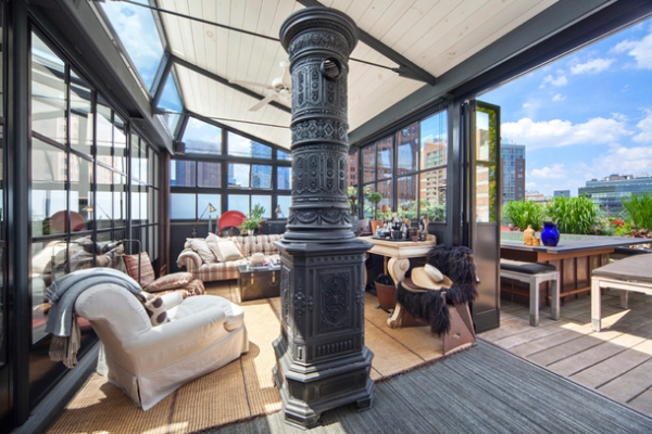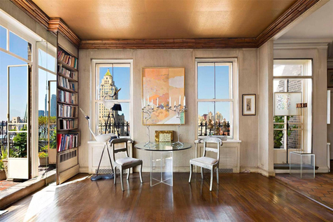 Здесь удивительно стильный и изящный интерьер, залитый солнцем и наполненный деталями, которые хочется рассматривать бесконечно. Дровяной камин с мраморной полкой 1800 года, спальня в стиле шале с деревянными балками, огромное количество произведений искусства — одним словом, это мечта любого человека, который хотел бы жить на Манхэттене.
