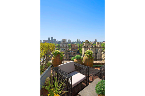 Этот пентхаус возвышается над остальными постройками на Парк-авеню, и из его окон открывается потрясающий вид на Центральный парк. Высокие французские двери и окна наполняют пространство светом и ведут прямо на просторную террасу. Она здесь, кстати, не одна — из библиотеки и столовой тоже есть выход на улицу, где под открытым небом можно в любой момент организовать обед или ужин.