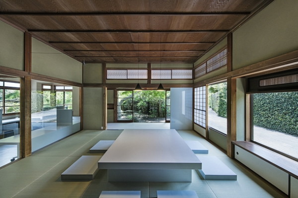 Для того чтобы сотрудники могли отдыхать и любоваться природой, архитекторы сохранили и отреставрировали традиционную "энгаву" — японскую веранду, выходящую в сад. Из нее можно попасть в комнату с татами, где проходят встречи с коллегами и клиентами компании.