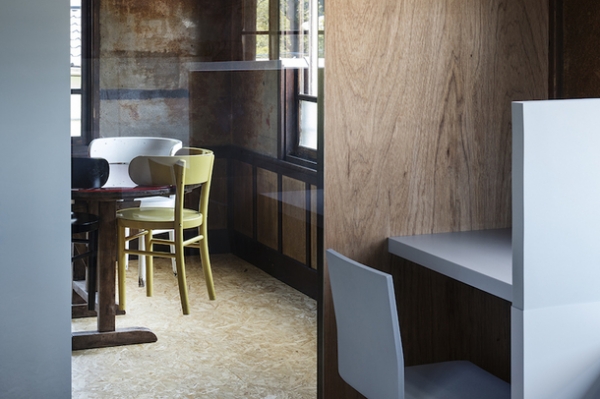 Для начала архитекторы очистили интерьер, оголив оригинальную кладку, потолок и стены. Увидев "белый лист", авторы проекта поняли, что логичнее будет разделить пространство на зоны, отталкиваясь от высоты потолков в разных частях здания. Убрав все японские традиционные деревянные раздвигающиеся двери, архитекторы получили удобный для работы опен-спейс.
