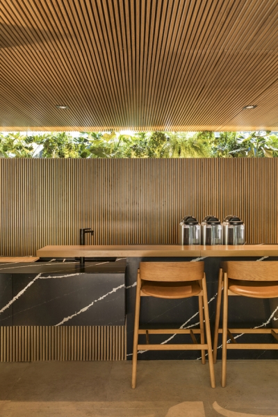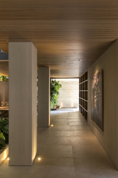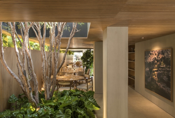 Бразильское бюро mf+arquitetos, реализовавшее проект, известно своей страстью к озеленению интерьера. Не уходя от традиции, дизайнеры наполнили все пространство зеленью, таким образом стерев границу между внешней и внутренней зоной.