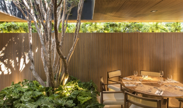 Проект озеленения ресторана разработало бразильское бюро ландшафтного дизайна Bia Abreu, благодаря которому многие кафе и рестораны Бразилии напоминают цветущие сады.