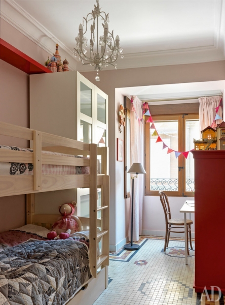 Комната младшего ребенка. Рабочий стол достался ему от прадедушки, который работал учителем.