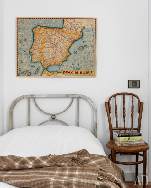 Детская комната. Металлическая кровать, винтаж; на стене, карта Испании.