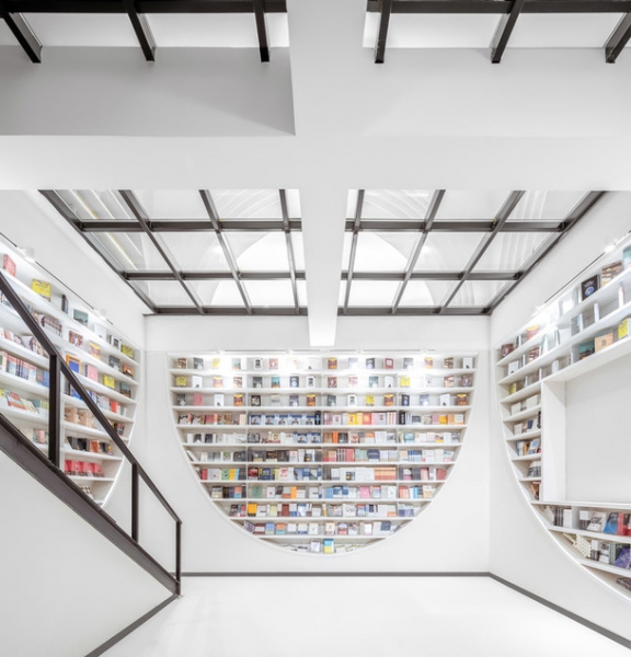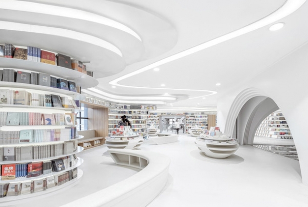 Дизайн-студия Wutopia Lab недавно спроектировала абсолютно белый четырехэтажный книжный магазин Zhongshu в Сиане — одном из древнейших городов Китая. Основное пространство книжного магазина состоит из разбитых по темам зон с популярными книгами. “Мы хотелили сделать рай для чтения “под облаками”. Поэтому решили, что у рая должно быть светлое, обтекаемое и свободное пространство”, — поделилась команда Wutopia Lab.