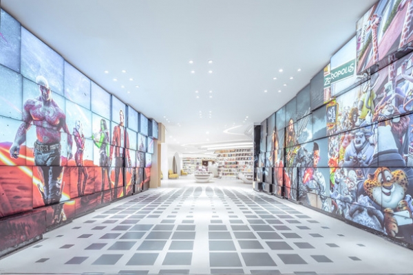 Также в магазине есть детская библиотека — это мир только для маленьких читателей, скрытый в зачарованном лесу, который украшают силуэты животных и деревьев. Внутри — секретные входы и выходы, мир игровых пещер и сказок, вечно синего неба и звездных ночей.