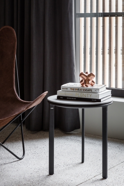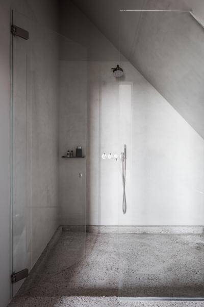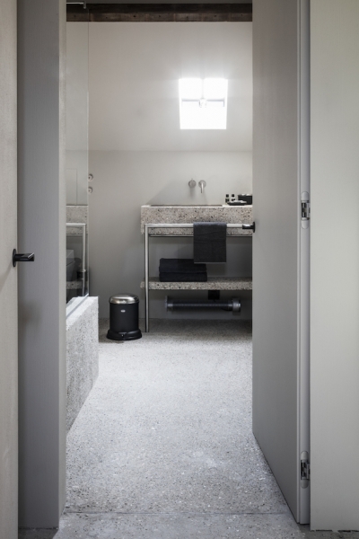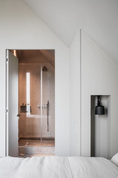 Автор интерьера отеля дизайнер Кристоф Гуссенс решил оформить номера и общие зоны B&B в необруталистском стиле, отдав предпочтение таким материалам, как бетон и сталь. “Выбрав бетон основным материалом, мы снова подчеркнули в отеле присутствие окружающих B&B бункеров”, — рассказал дизайнер.