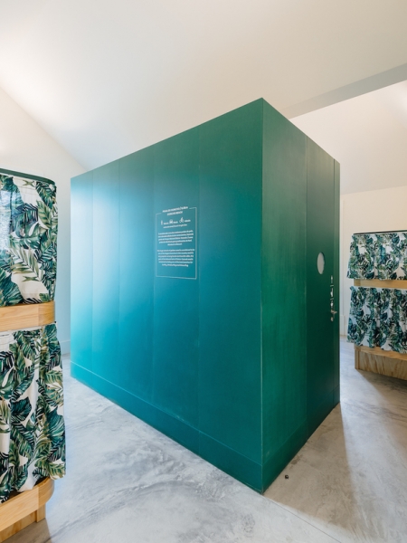 А занавески из ткани с пальмовым принтом, которые закрывают каждое спальное место, не просто поддерживают идею отдыха, но и дают возможность спрятаться от чужих глаз. Как написал в своем отзыве один из русских постояльцев, “даже в номере с девятью соседями есть ощущение приватности”.