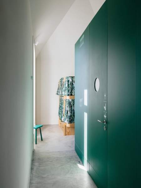 “Мы разрабатывали проект, исходя из этого требования”, — рассказывают основатели Aurora Arquitectos София Коуто и Сержиу Антуньеш. В каждой спальне появились санузлы, заключенные в темно-зеленые кубы: их легко демонтировать, если дом перестанет принимать постояльцев.