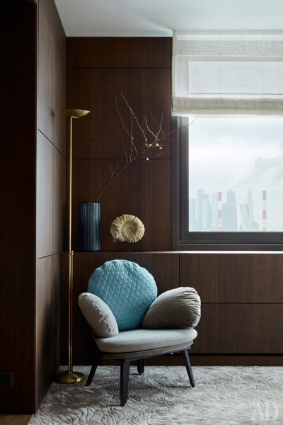 “Относительно стиля будущего интерьера клиенты никаких жестких рамок не ставили, — вспоминают архитекторы. — Единственное их пожелание было: никакого пафоса и никакого гламура." Поэтому в интерьере ставку сделали на натуральные материалы и естественные оттенки.