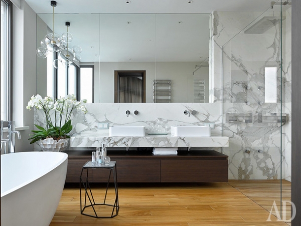 Ванная. Сантехника, Agape, Fantini, Antonio Luppi. Тумба по проекту DWG Interiors (производство — Frezza Arredamenti (Flat interiors/ салон Флэт-интерьеры)); cтолик, Henge; декоративный свет, Giopato & Coombes; камень, Calacatta Extra.