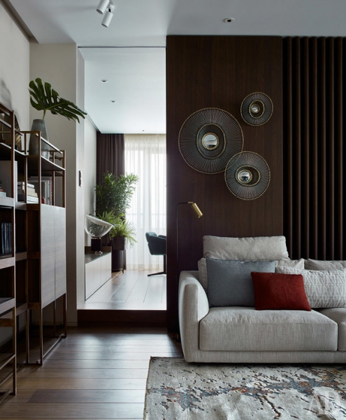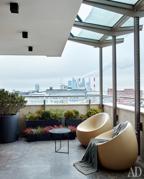 Архитекторы из DWG Interiors оформили пространство московского пентхауса со множеством террас. Интерьер получился лаконичным и “теплым”.