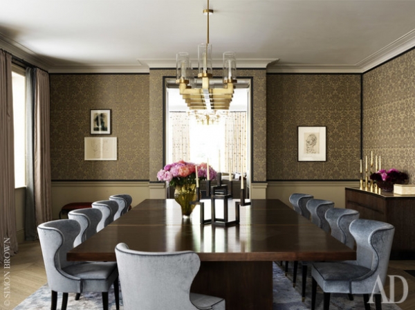 Парадная столовая. На стенах, ткань Fortuny. Люстра по эскизам дизайнера.