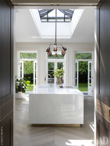 Этот просторный дом находится в оживленном мегаполисе, поэтому дизайнер Наталья Мияр постаралась создать в нем такую обстановку, в которой было бы одинаково комфортно и членам семьи, и гостям. На нее произвели впечатление классическая архитектура и правильные пропорции коттеджа, однако она решила создать интерьер с современным характером.