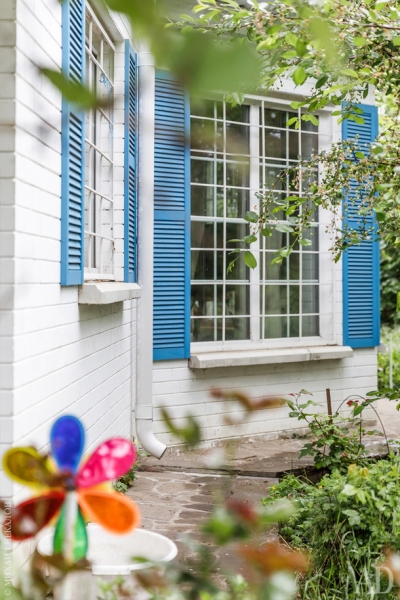 Дизайнер мечтала жить в доме из белого кирпича с красной крышей и голубыми ставнями.
