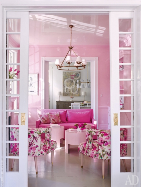 Американский декоратор Сьюэллен Грегори заразилась от своей заказчицы любовью к розовому цвету.
