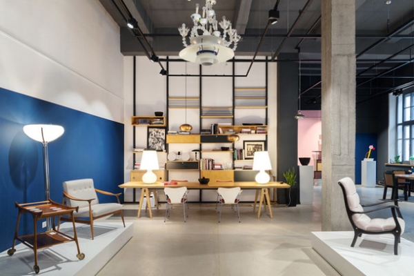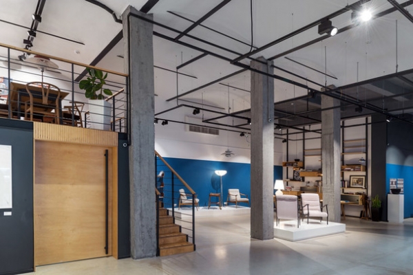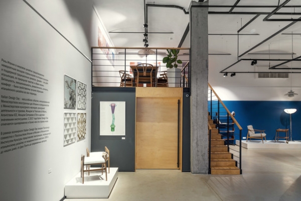 В качестве основного цвета для стен выбрали белый, местами разбавив темно-серым. “Если для картинной галереи идеальный интерьер — это “белая коробка”, то для галереи, где выставлены предметы дизайна и мебели, контекст играет большую роль. Поэтому пространство Трехгорной мануфактуры — отличный фон и дополнение к экспонатам”, — рассказывает ведущий архитектор проекта Дарья Ионова (Мельник).