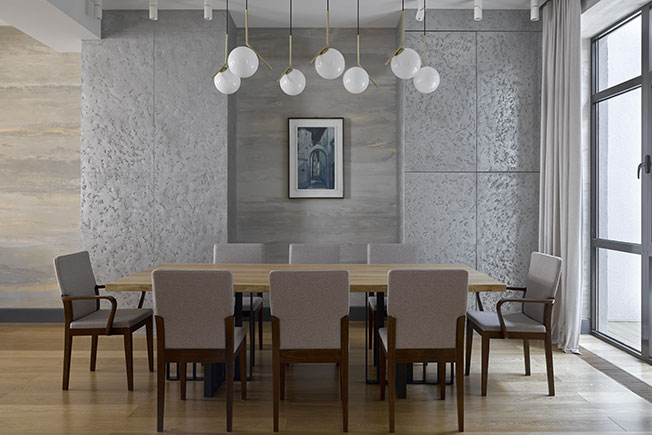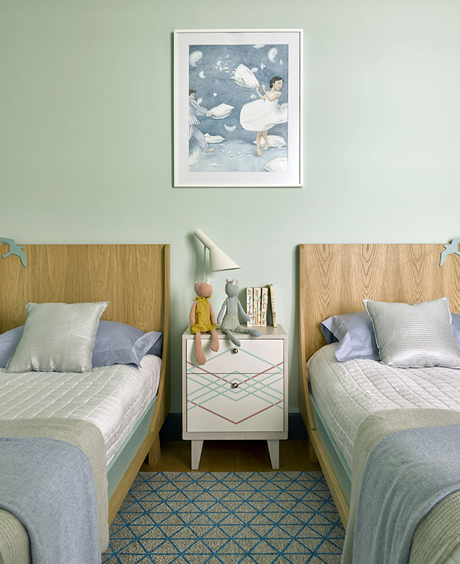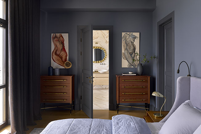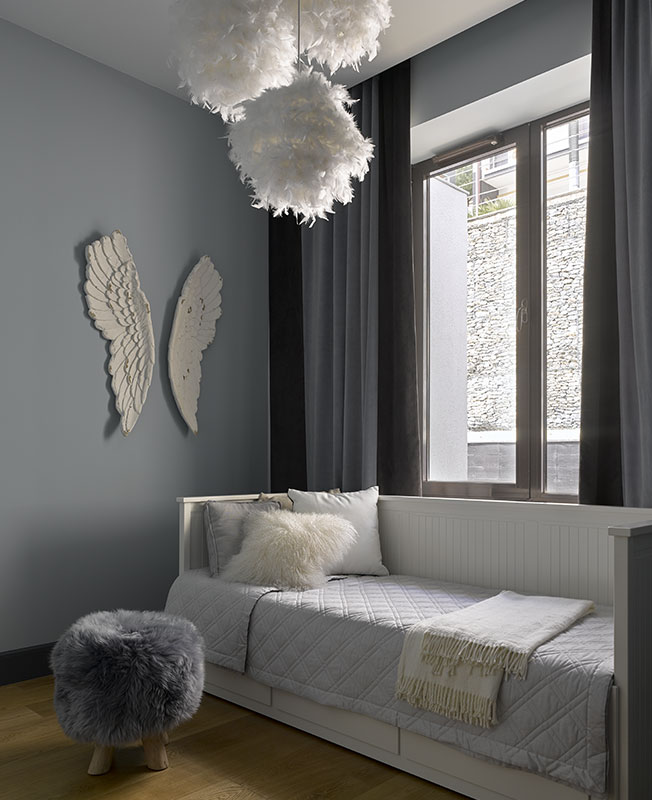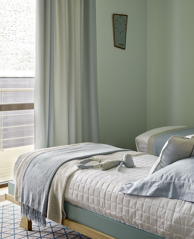 Цветовая палитра взята из окружающего мира. Мы черпали по крупице каждый из натуральных оттенков, которые видели из окна, выбирали самые мягкие для восприятия: теплый и глубокий синий, жемчужный и перламутровый, свежий мятный и матово-песочный.