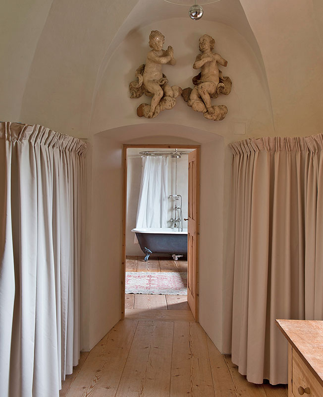 Глядя на ироничные, эпатажные скульптуры Эрвина Вурма, никогда не скажешь, что этот мастер может быть очарован старинной архитектурой. Между тем он выбрал для жизни монастырскую постройку. «Когда мы купили здание XII века, в нем находилось шесть квартир, — рассказал нам Эрвин Вурм. — Моей мечтой было вернуть его к состоянию, максимально близкому к историческому. Я разработал планировку, но в итоге от нее не осталось и следа! Дом сам диктовал нам дизайн, навязывал атмосферу, принимал и отклонял предложения.