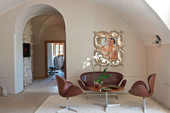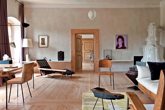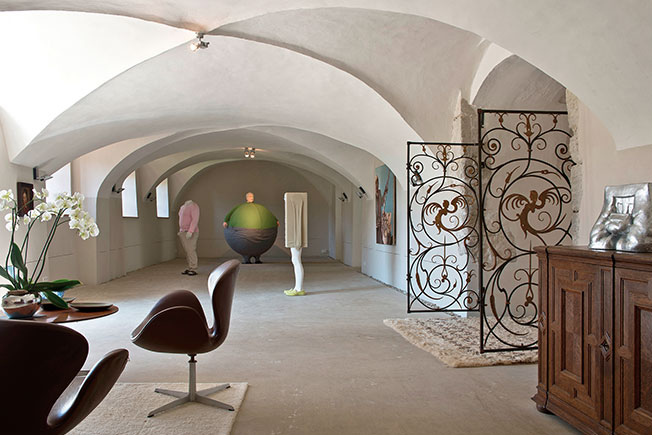 Чтобы расчистить монастырское здание, пришлось снести множество стен — повсюду были маленькие комнаты и большие коридоры. Эрвин Вурм получает эстетическое наслаждение от архитектуры, поэтому оставил ее главным героем своего дома. Скульптор не боится голых стен и пустых пространств. Он понимает, что, произведения искусства (включая его собственные) в чистых объемах смотрятся значительнее. А дорогой коллекционный дизайн предстает умело аранжированной музейной экспозицией.