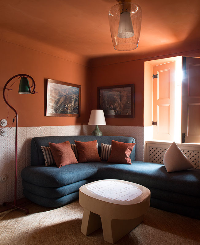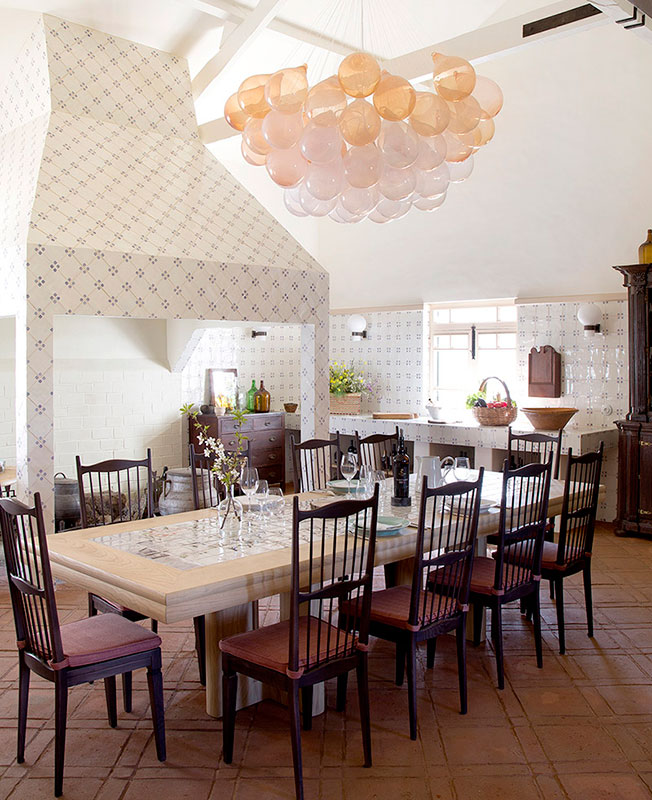 Здесь много местного ремесленного и мало штампов. Мавританские арки, голубые плитки азулежу, белая и терракотовая покраска стен создают необходимый локальный колорит. Мебель из дерева и лавого камня выполнена с учетом комфортных мест для дегустаций. Все должно подчеркивать красивый образ семейного дома.