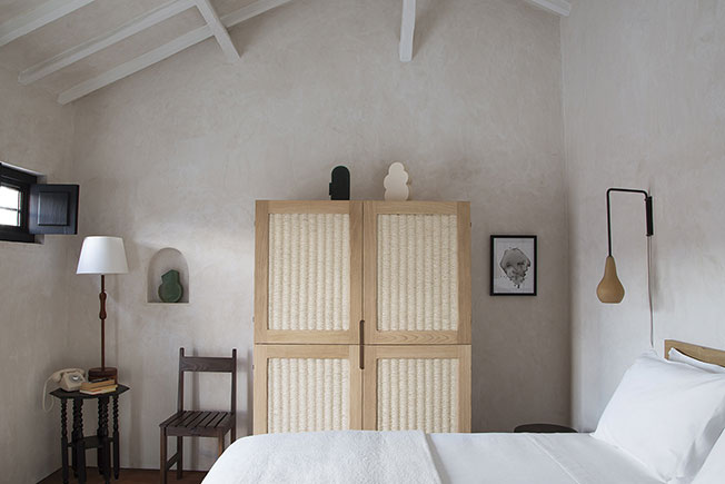 Над главным столом висит светильник с выдувными шарами, сделанными мастером-стеклодувом Маттео Гоне, выглядит как гроздь винограда. На большой террасе стоит другой стол, в тени беседки он окружен лимоном, оливами, миндалем, сливой, апельсиновыми и фиговыми деревьями, спускающимися к прозрачному бассейну. В таком мире время останавливается. • От 170 евро за ночь.