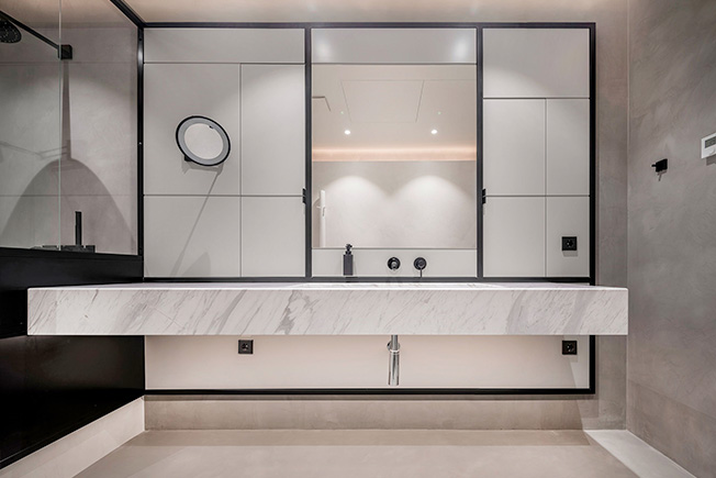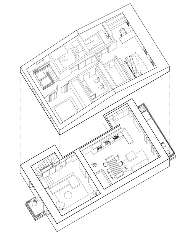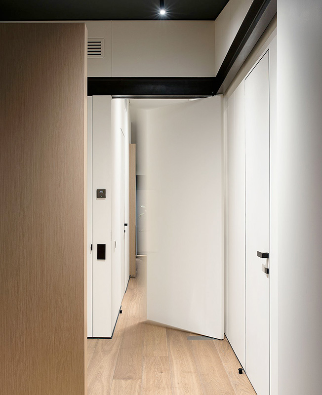 По словам авторов проекта, они хотели предложить инновационные архитектурные решения, которые будут оставаться актуальными с течением времени и превратят квартиру в по-настоящему комфортное пространство для жизни. Среди них встроенные жалюзи, скрытые в панельных стенах чердака, а также полностью звуконепроницаемая ванная комната на нижнем уровне.