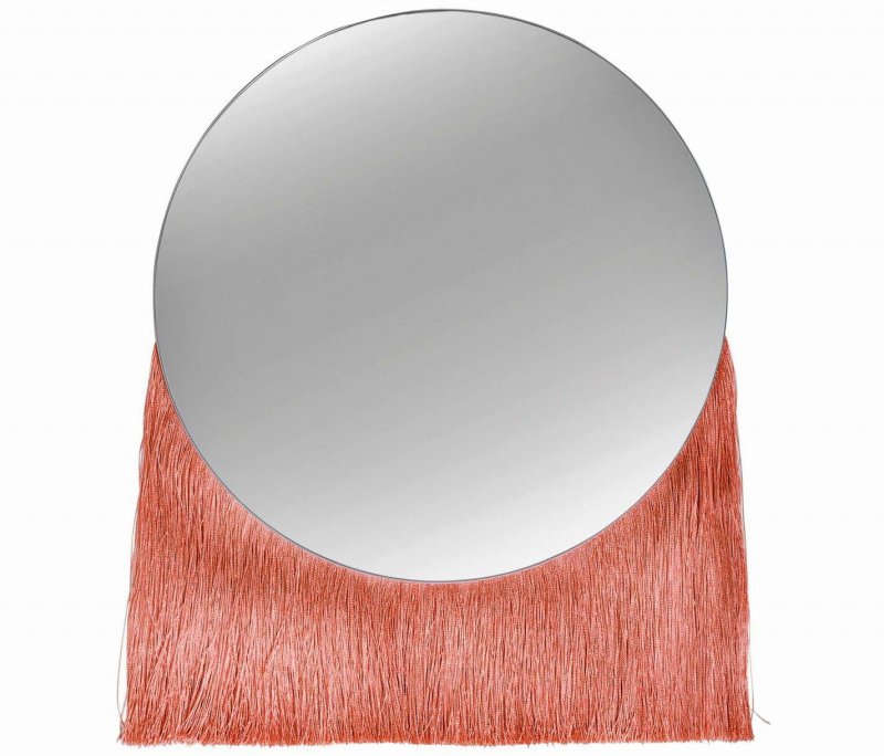 Интерьер сезона 2018-2019 отличается безудержной любовью к бахроме и кистям. Они украшают пуфы, диваны, настенные панно, подушки, ковры, люстры и настольные лампы. Смотрится кокетливо, по-домашнему мило, с долей ностальгической нотки. А как вам идея приобрести большое круглое зеркало с бахромой?