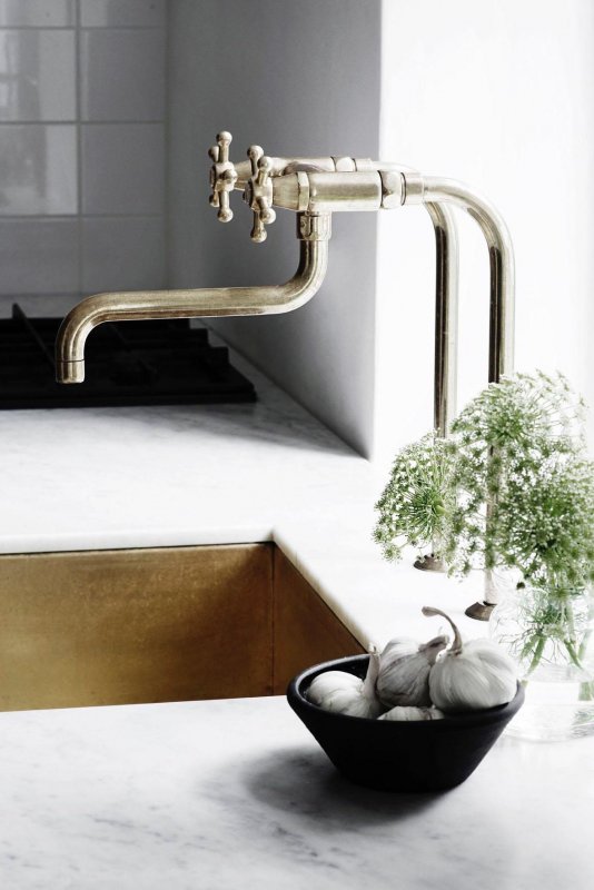 Среди тенденций в интерьере 2019, о которых стоит рассказать, – латунная фурнитура для ванных комнат и кухонь. На протяжении последних нескольких лет этот сплав удерживает сильные позиции среди материалов. Такие краны, смесители, переключатели добавляют последний штрих к дизайну, словно драгоценный камень. В бетонных или мраморных ванных они поддерживают прохладное сияние, а в минималистичные белые кухни вносят тепло.