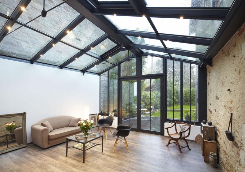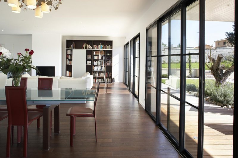 Речь идет о внутренних межкомнатных перегородках, зонирующих конструкциях, обрамлении дверных проемов, раздвижных и распашных дверях, французских окнах, душевых экранах. Прием настолько универсален, что спокойно внедряется в классические и современные стили. Идея отлично подходит и для панорамного остекления, мансардных окон, дизайна веранд и выхода на задний дворик.