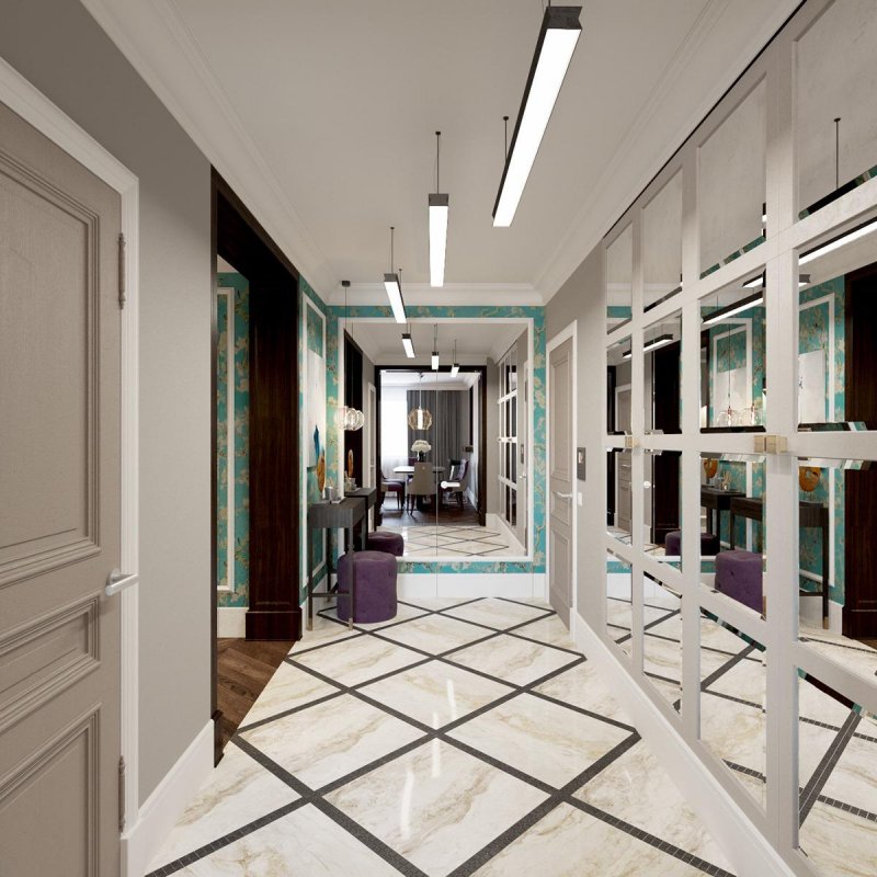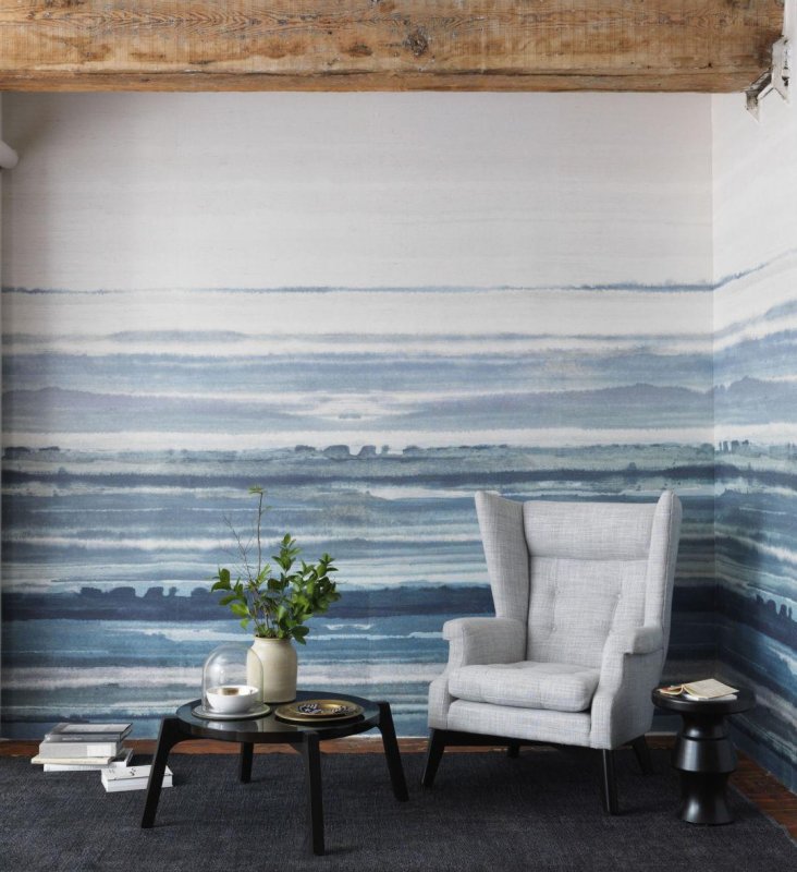 Морская тематика в дизайне интерьера 2019 распространяется на оформление мягкой и деревянной мебели, ковров, ваз для фруктов. Нейтральные по цвету обои с изображением жемчужных раковин одинаково легко впишутся в общественные и приватные помещения. Керамическая плитка в форме рыбьей чешуи украсит ванные комнаты и кухни. Самый гламурный вариант – в темно-синем исполнении.