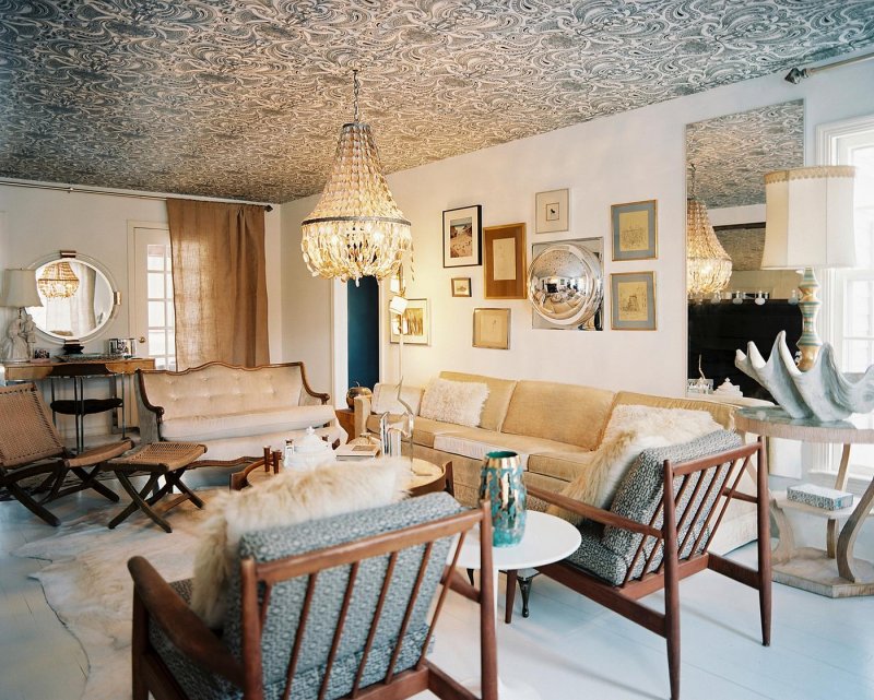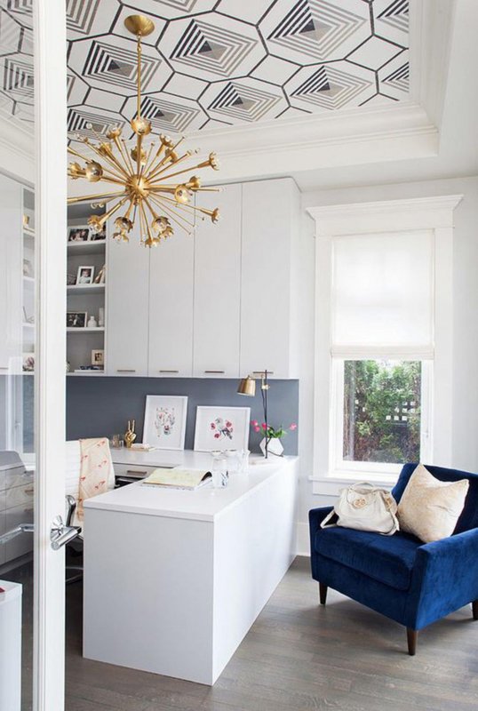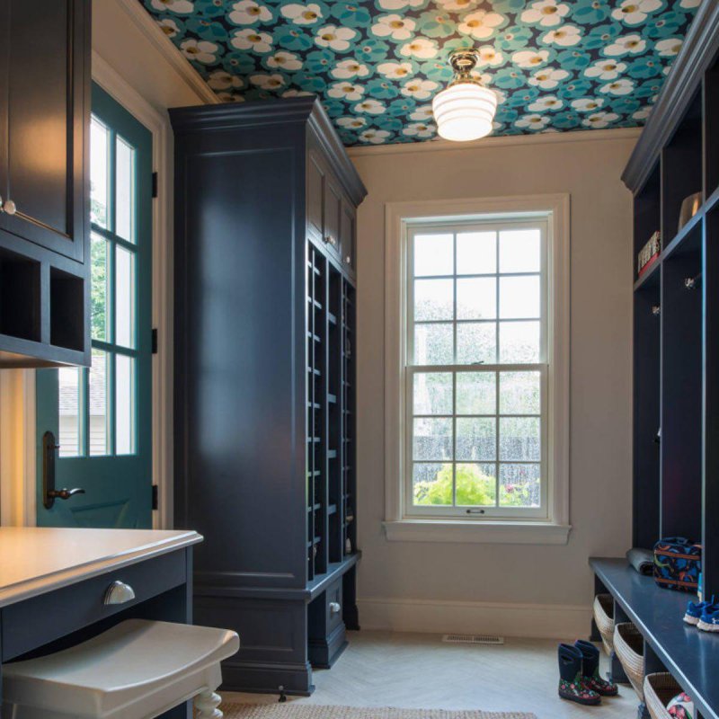 Так образно называют потолок. Можно часами мучительно выбирать цвет краски для стен, а вот про потолок почему-то все забывают. А ведь его можно окрасить, оклеить обоями! Цветные потолки сделают комнату более яркой и запоминающейся скорее, чем любая акцентная стена. Обои контрастные к стенам создадут эффект неожиданности при входе в помещение.